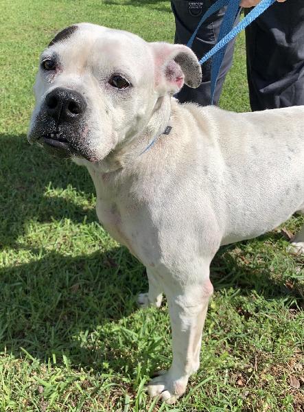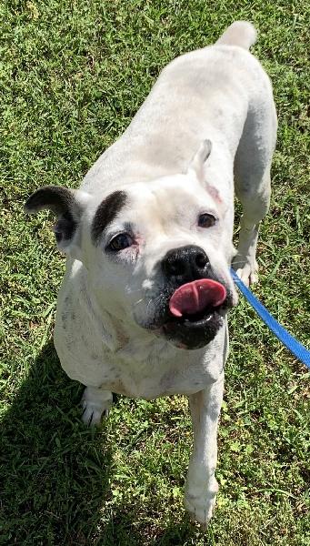 Notes: Since this sweetheart has not been claimed, she is now available for adoption. Moxie is the sweetest little Boxer mix you could ask for. We are estimating she is around 7 years old and we have been working on getting her strength back up since she came in. She loves meeting new people and has been gaining confidence every day that she is here. She has not shown any issues with other dogs, though it would be a good idea to slowly introduce her to other animals because she can be a bit timid at first. Moxie loves going outside to play when we have good weather, that is when we see her at her "wildest". Overall, she has a very good temperament, she is laid back when she needs to be, and she can run around like an oversized puppy when she gets the chance! We believe she would be a wonderful family dog that would bring a ton of love and entertainment along with her.