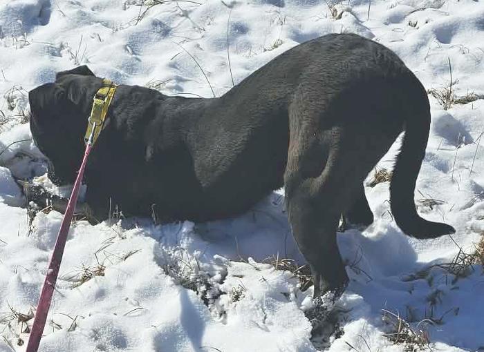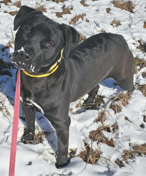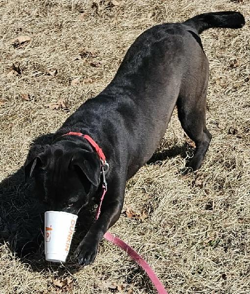 Feb 12th video #2: Joker has to check everything he finds on his walks. Today it was a coffee cup he found in the field. He decided to wear it on his nose for half the walk. Joker is up for adoption through Rainbow Animal Rescue. He is estimated to be 12 months old (in November 2025) and weighs 57 pounds. He is neutered, heartworm negative, and up-to-date on vaccines. Joker was at Nash County Shelter for a couple of months and is scared of loud noises and is timid meeting strangers. I think he likes Tonka (see video). If you are interested in this dog please fill out an adoption application formSee a video of Joker by clicking here